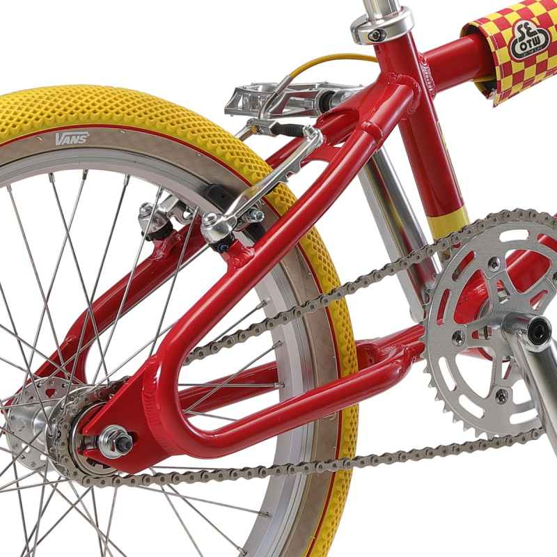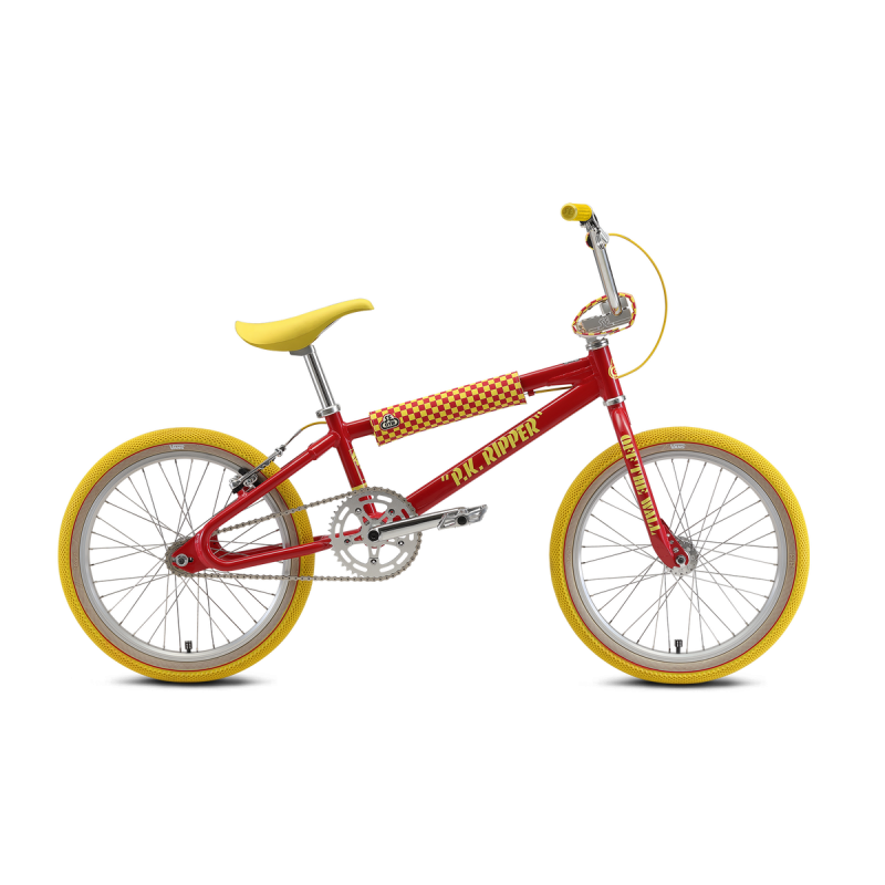 With over 40 years of production, the PK Ripper is the most famous and longest-running bike in the history of BMX. It honors a legacy both innovative and timeless. This year we collaborated with Vans, the original action sports footwear and apparel company, to produce the first-ever limited-edition Vans PK Ripper, adorned with details like Vans x Cult tires and grips, a Vans checkerboard padset, and even Vans 66 valve caps. Vans was founded in 1966 in Anaheim, CA, and the brand is embedded in BMX culture. Many top riders throughout the history of the sport including PK himself, Perry Kramer, have worn Vans shoes and ridden in many Vans-sponsored BMX races and events. To complete this awesome PK Ripper collaboration, Vans produced Vans x SE Bikes PK Ripper shoes, complete with reflective checkerboard detailing and PK Ripper sidewall art. Get the bike and get rippin�!�