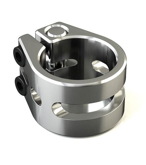 The Sacrifice 2-Bolt Nutron Clamp is a big clamp in a small clamp's body. This double clamp features a threaded steel insert that keeps your bolts from stripping, so it can be tightened as much as you need or want. A shim is also included, so the Nutron can be used with both standard (31.8mm) and oversized bars (34.9mm) .