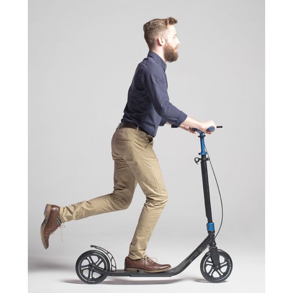 Thanks to the one second folding system on the pole, adults no longer have to awkwardly bend down to fold a scooter. Simply lift and pull the clamp, and the scooter will automatically go into self-standing mode and down into trolley mode.