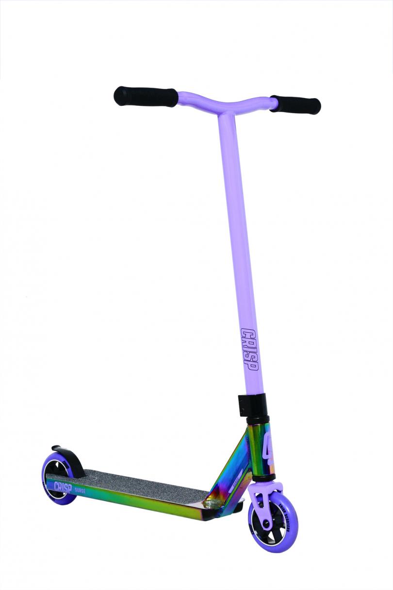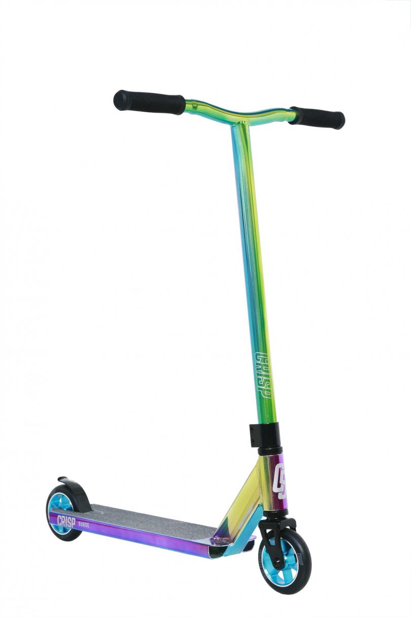 All new 2021 model Surge scooter from Crisp Scooters. The Surge at $155 is a great scooter to start out on for younger riders that want a scooter with the neochrome, oil slick finish at a great price. This scooter is based on the best selling Crisp Blaster but comes with the larger 110mm wheels for a smoother and faster ride. The beautiful neo chrome finish really makes this scooter stand out from the crowd.