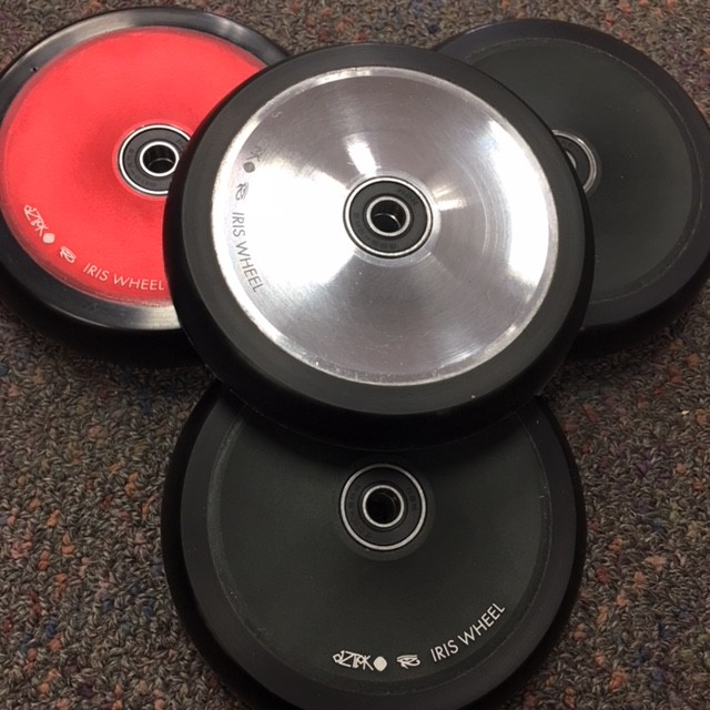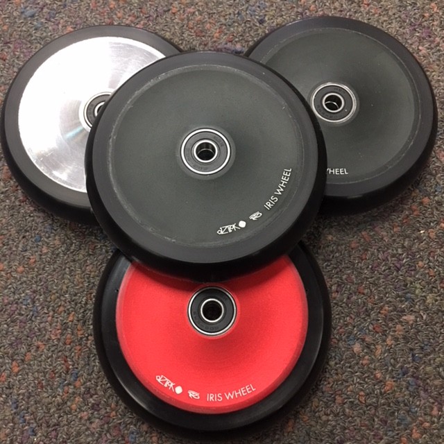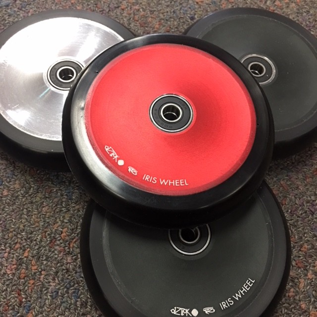 The Aztek Iris Wheel is constructed using a two-piece 6061 aluminum hollow core to reduce weight. A tasteful contour gives it a stunning new look. We've switched to a new, super high-rebound urethane formula to give you one of the smoothest, fastest wheels ever made. All sitting on the highest quality bearings we could source. The Iris Wheel is setting a new standard for scooter wheels.