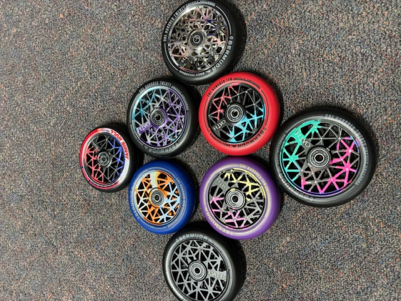The Bermuda Wheel will knock your socks off every time you look at it, but still rides like you wouldn't believe, with a tapered fatter 26mm, low profile tire and available in both 110mm and 120mm, this truly is the perfect scooter wheel that is compatible with standard size forks. The Bermuda wheel comes fitted with high grade Oath Fidelity bearings which are constructed with just the right mix of speed & durability.
