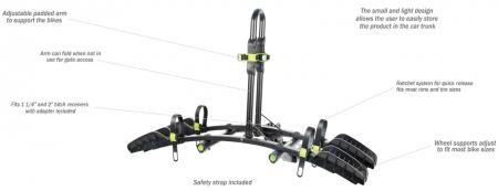 The BUZZYBEE H2 is a very simple and easy product to use to carry 2 bikes on a hitch. The light frame will securely transport 2 bikes for a very affordable price. Available in 4 bike version, here is a description of the 2 bike.