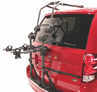 The new Over-the-Top bike rack from Hollywood Racks features an adjustable "high rise" frame which prevents strap contact with the spoiler. Includes removable hatch anchors and quick connect straps for secure attachment to hatches, trunks, roof rack cross bars and roof rack raised rails. Also, fits most vehicles without a spoiler.