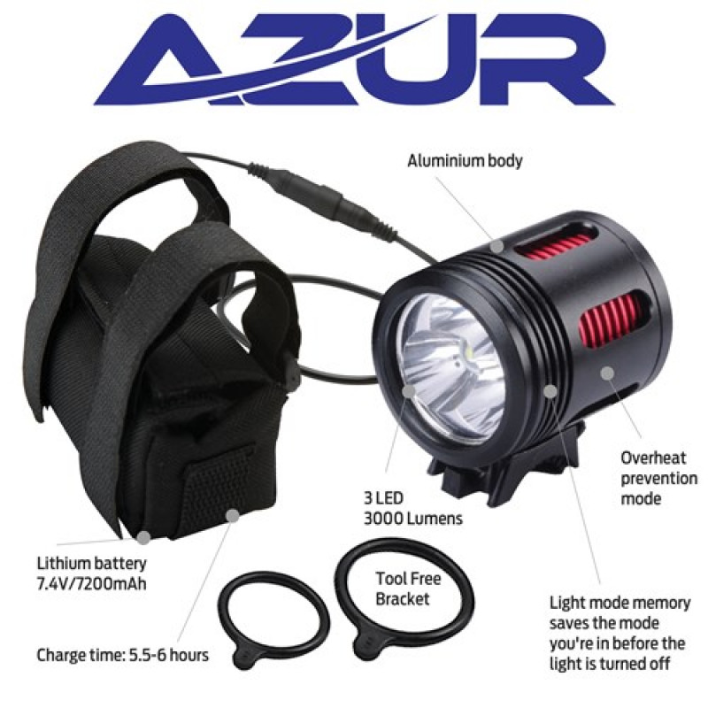 Finally, the 12-month warranty on all Azur lights provides peace of mind and ensures that you are covered in case of any issues with the product. Overall, the Azur Titan 3000 Lumen Headlight is a great investment for anyone looking for a reliable, high-quality headlight for outdoor activities.
