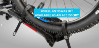 Holding the bike: Simply position the bike on the wheel support. Adjust the clamp position by sliding it around the vertical tubular frame to find the perfect fit with the bike frame. Clamp the frame, attach the wheels using the ratchet straps, lock the clamps.