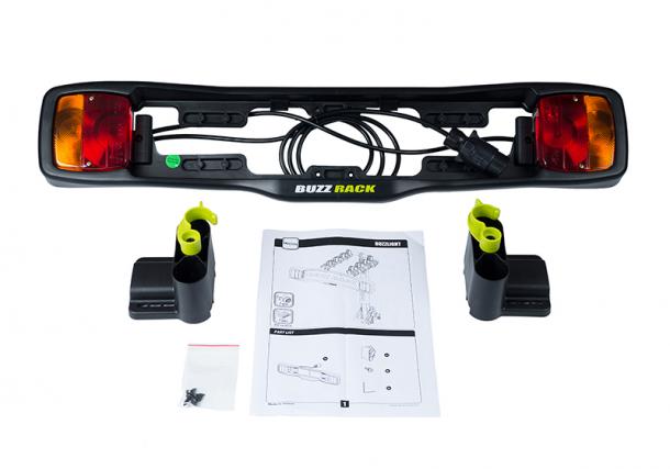 The Buzz Rack number plate holder attaches to the Buffalo & BuzzyBee style racks and plugs into your trailer plug (flat-7 plug), with an adapter, to display your bike rack number plate and also to provide an extra set of brake and indicator lights.