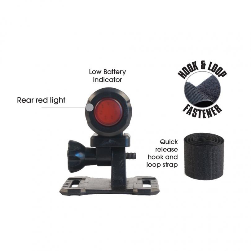 The light is water-resistant, lightweight, and comes with an adjustable hook and loop quick release strap, making it easy to attach to your helmet. The rechargeable lithium battery has a capacity of 3.7V/700mAh and takes 2.5 hours to fully charge. It also comes with a charging and low battery indicator to help you keep track of battery life.
