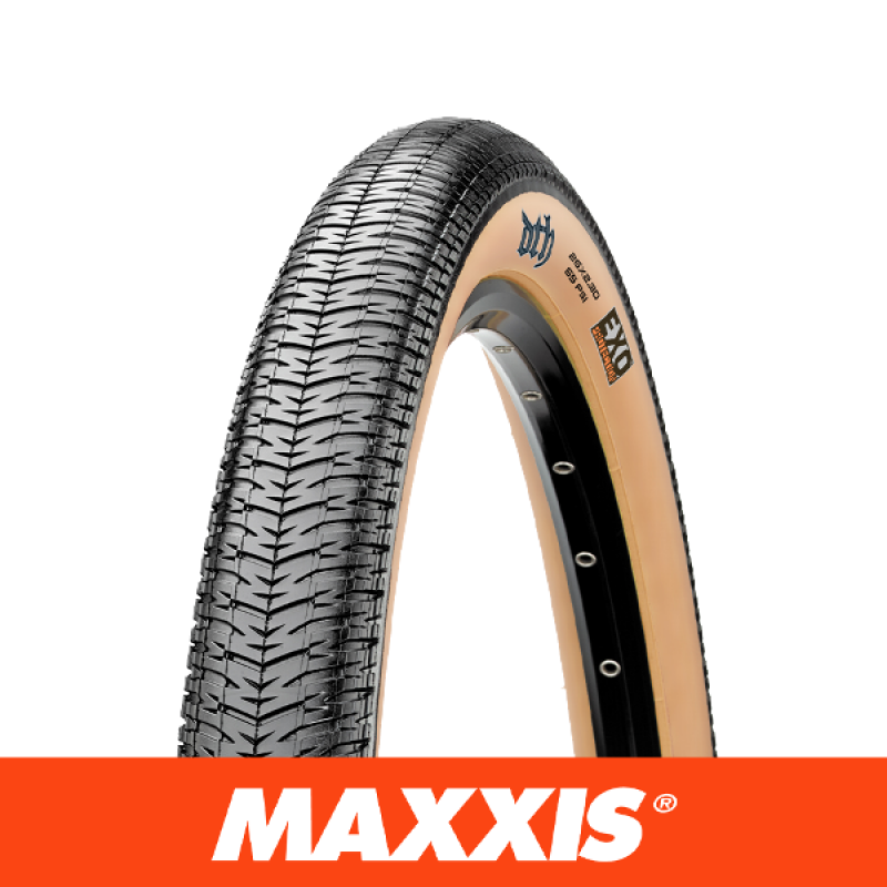 The Maxxis Drop The Hammer (DTH) 26 by 2.3 Dirt Jump Tyre Gum Wall is a high-performance tyre designed for BMX, dirt jumping, and pump track situations. The grooved slick design of the tyre is versatile and suitable for various terrains, including groomed tracks, pavement/asphalt, and skate parks.