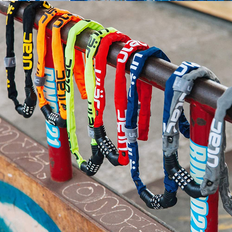 The Ulac Street Fighter Lock is a reliable and convenient bike lock with its combination of features and our most popular lock. The ULAC Velcro makes it easy to store and transport the lock when not in use. The heat-treated hardened steel chain and high-quality nylon sleeve provide both cutting and scratch resistance for the lock. Additionally, the resettable combination lock mechanism allows for up to 10,000 unique combinations, providing a high level of security for your bike.